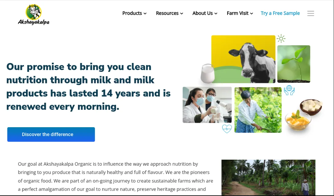 Akshayakalpa is a farmer-entrepreneurship initiative and focuses on making the farmers self-reliant by using technology and processes to produce safe and wholesome food for the customers using sustainable practices.