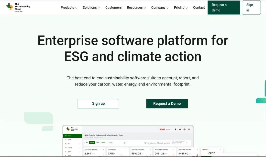 Software platform designed to track carbon emissions, energy consumption, environmental impact, water usage, and waste management.