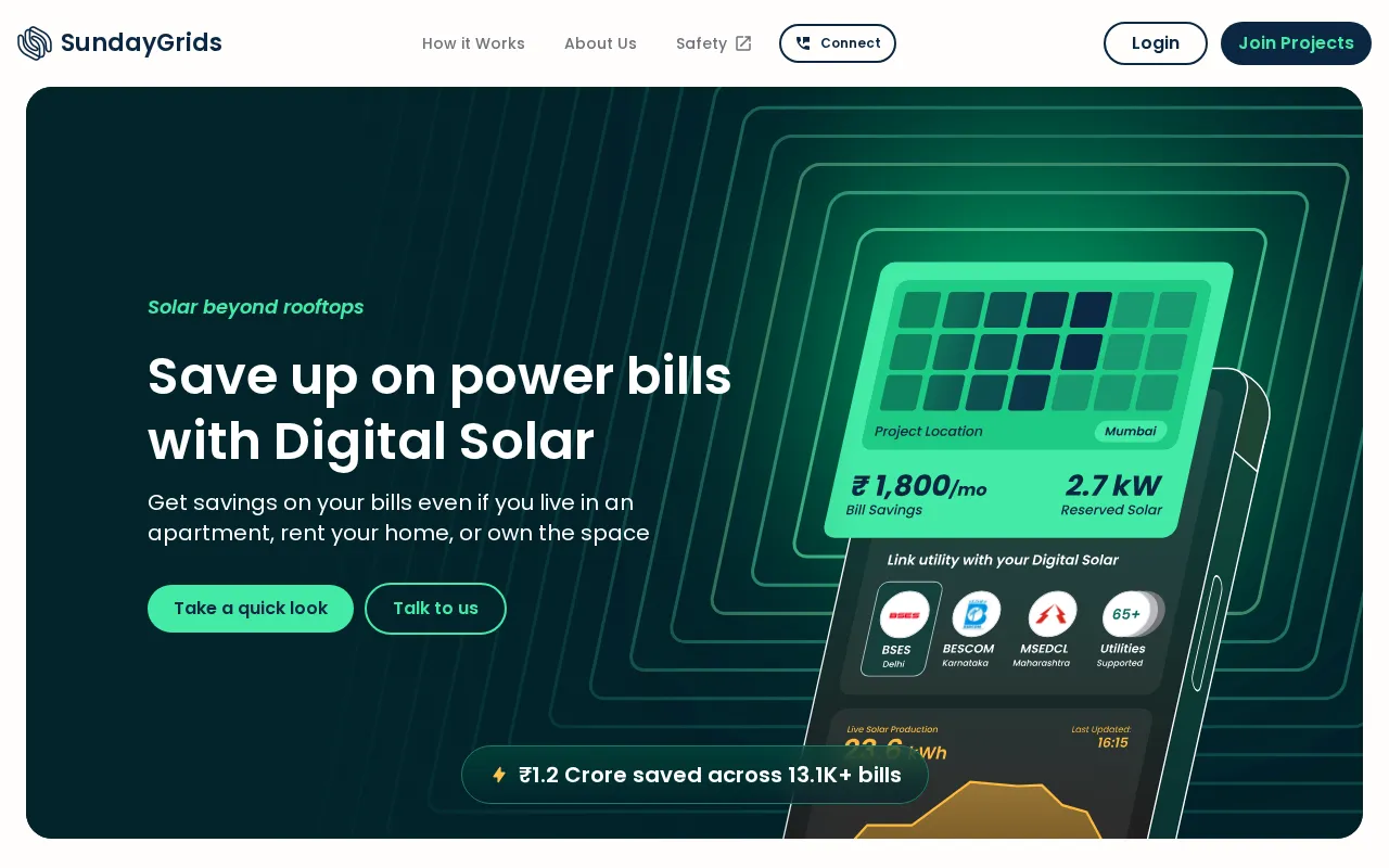 SundayGrids is democratizing solar energy. They are essentially a marketplace to purchase remote solar energy and utilize it against utility bills.
