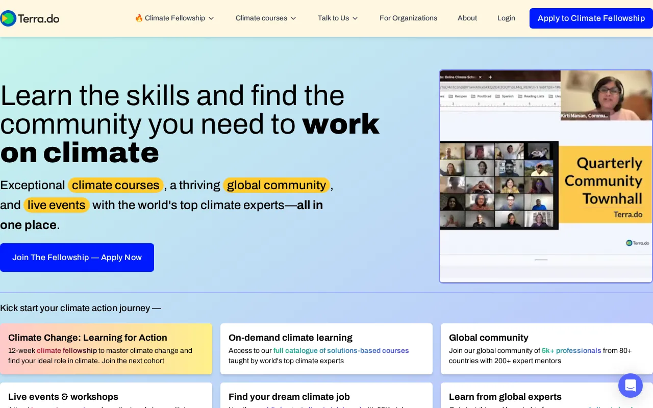 Terra.do is an online climate school that trains aspiring climate entrepreneurs with the worlds leading experts on climate science, policy, business and social justice.