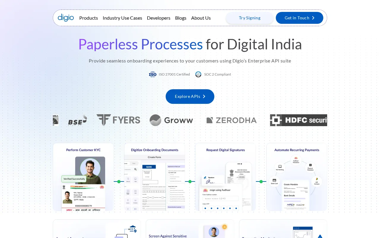 Digio is driving India’s digital transformation - by bringing paperless, hassle-free documentation and digital processes to Indian businesses and consumers.