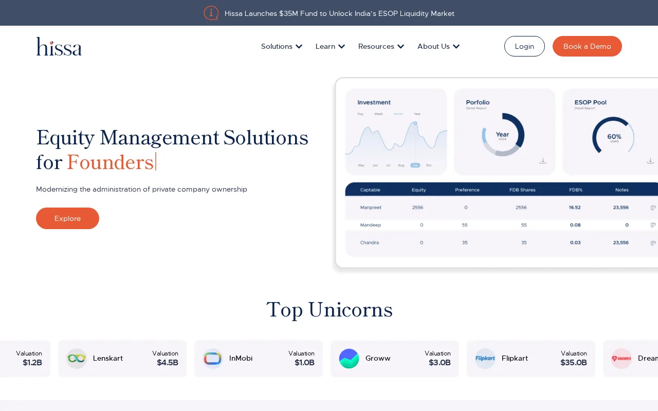 Hissa is a legal and fintech startup that enables private companies to digitize and securely manage their equity holdings and fundraising transactions.