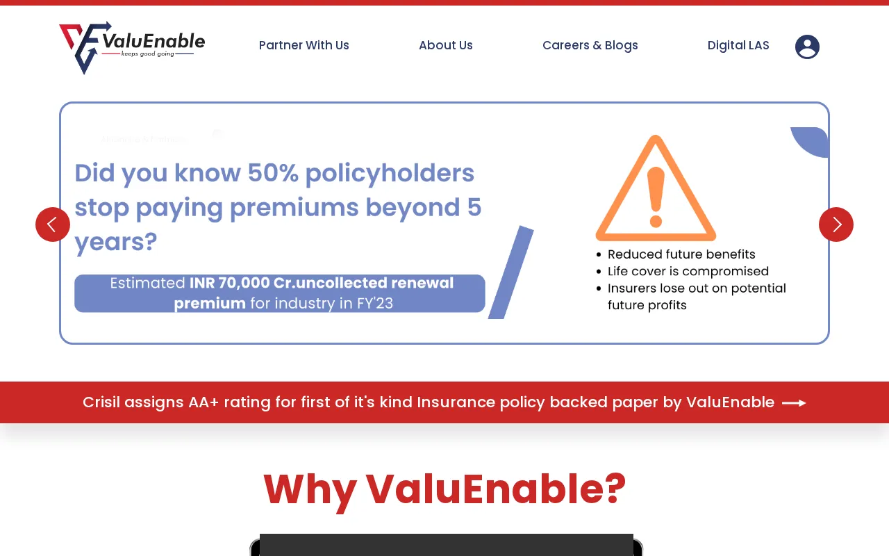 A platform that helps clients continue receiving the benefits of their life insurance policies by allowing them to take a loan against the surrender value, or assign the policy to another person in times of need. Valuenable also works directly with Insurance companies to educate clients on why they need to continue with their insurance policies.